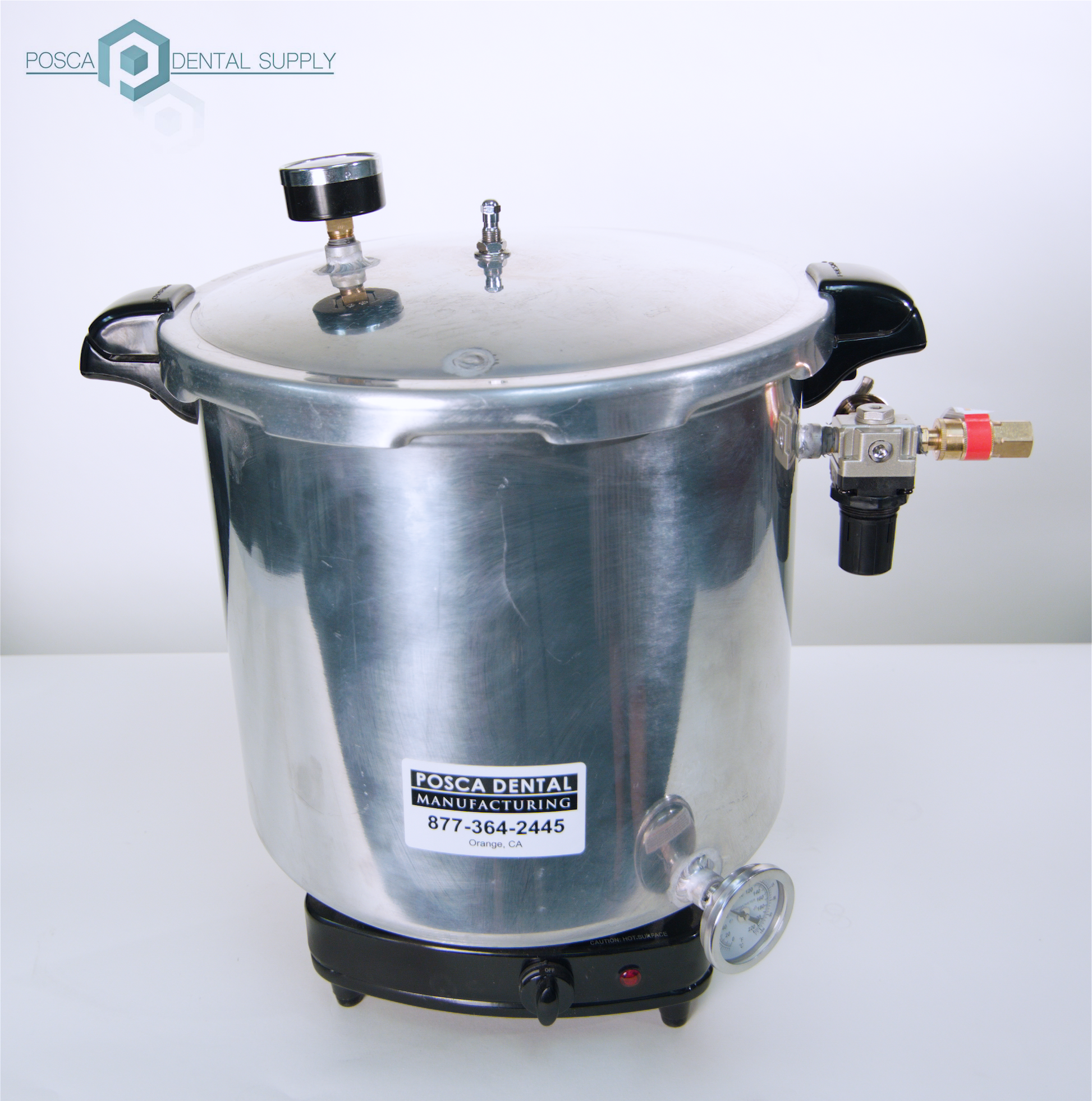 This 23QT Pressure Pot is made out of aluminum and has been modified with an air regulator valve, pressure gauge, thermometer and has a permanent heater attached.