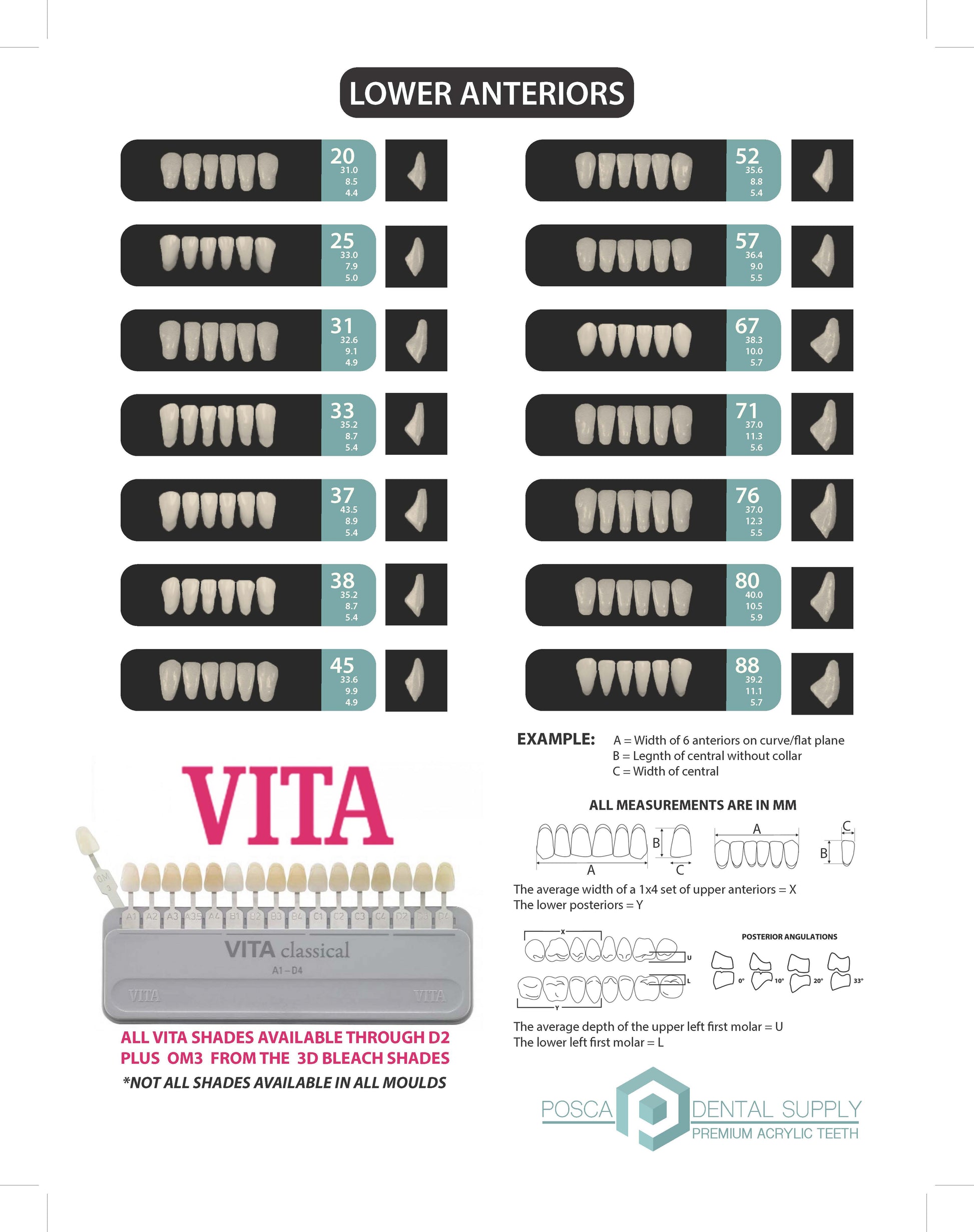 POSTERIOR MOULDS: 28 U/L , 30 U/L , 32U/L , 34 U/L , 36 U/L , 37 U/L : ALL SHADES