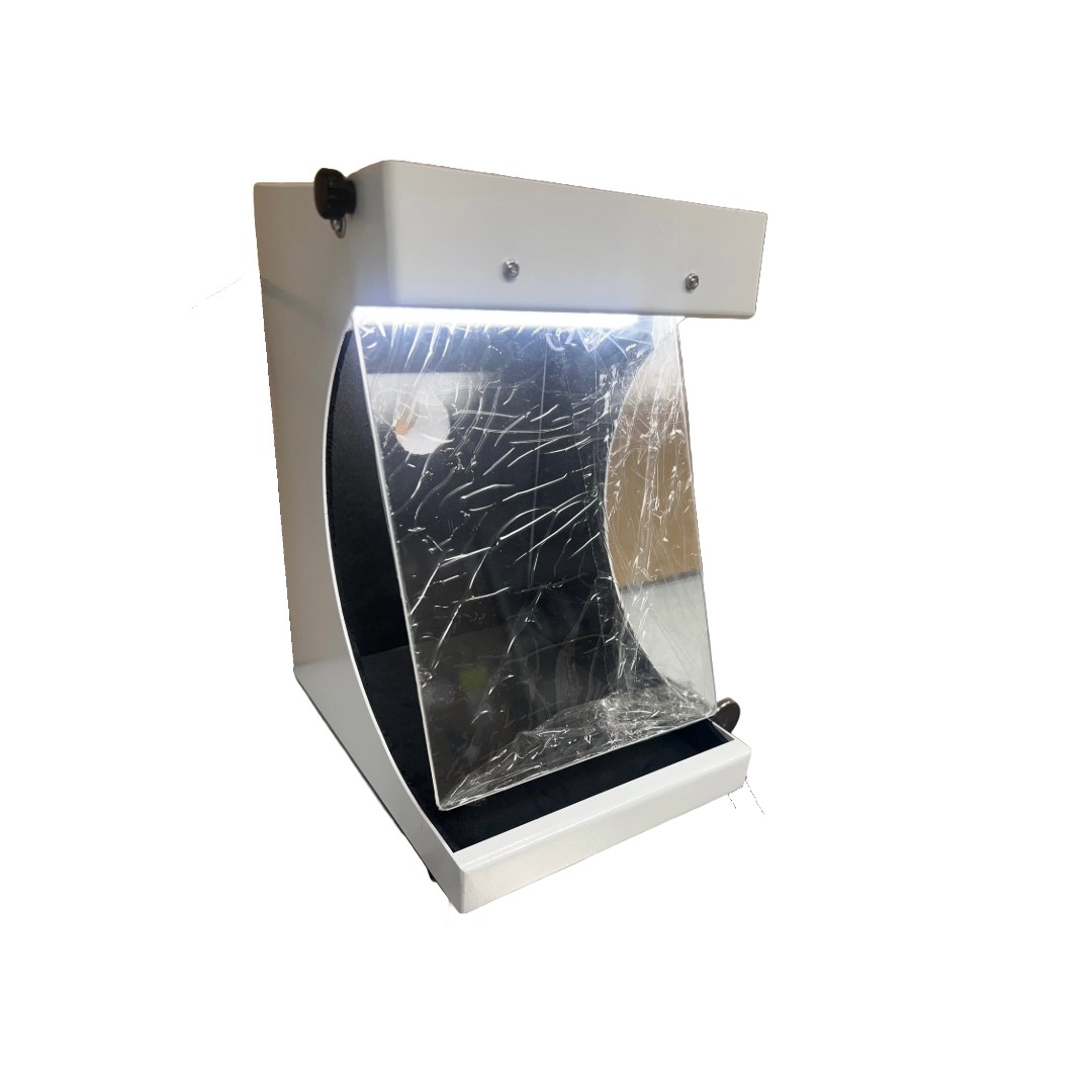 Equipped with a built-in light, vacuum hose outlet, and an adjustable clear acrylic shield for added convenience.